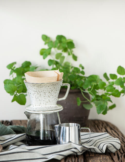 Malá nerezová konvička, kterou můžete využít například na mléko do kávy.