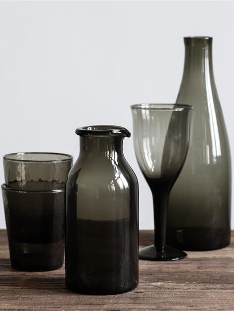 Ručně vyrobená karafa z recyklovaného skla. Krásná jako dekorace, ale perfektně funguje také jako láhev s vodou na jídelním stole. Vhodné do myčky na nádobí.