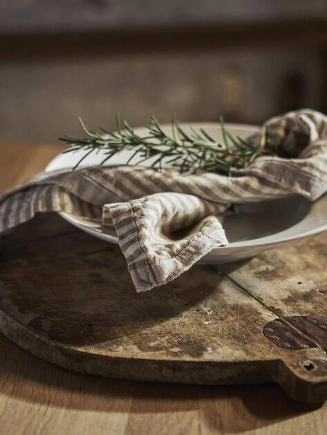 Sada dvou ubrousků ze směsi lnu a bavlny v béžových odstínech, které ozdobí váš stůl během stolování.