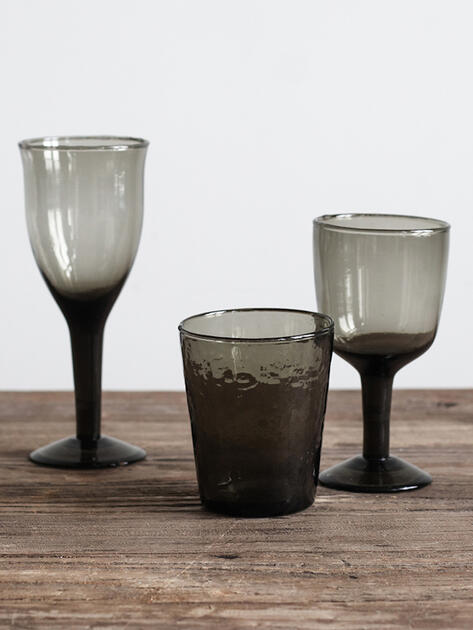 Ručně vyráběné sklenice na vodu z recyklovaného skla v barvě Smoke. Vhodné do myčky na nádobí.