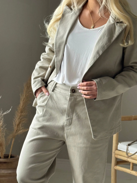 Stylové chino kalhoty s rovnými nohavicemi. Tyto kalhoty jsou vhodné jak na každodenní nošení, tak na formálnější příležitosti.Kalhoty mají poutka na pásek a přední kapsy, jako krásný detail jsou zde falešné zadní kapsy.
