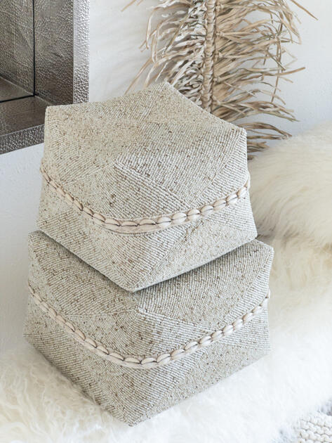 Korálkový koš je ručně vyráběný z přírodních materiálů, drobné odchylky se mohou vyskytovat ve tvaru a barvě.