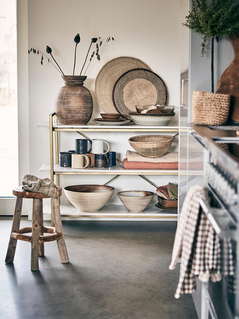 S láskou ručně vyráběná kulatá stolička z teakového kořene. Jednotlivé stoličky se od sebe můžou lišit, v dřevě můžou být praskliny.