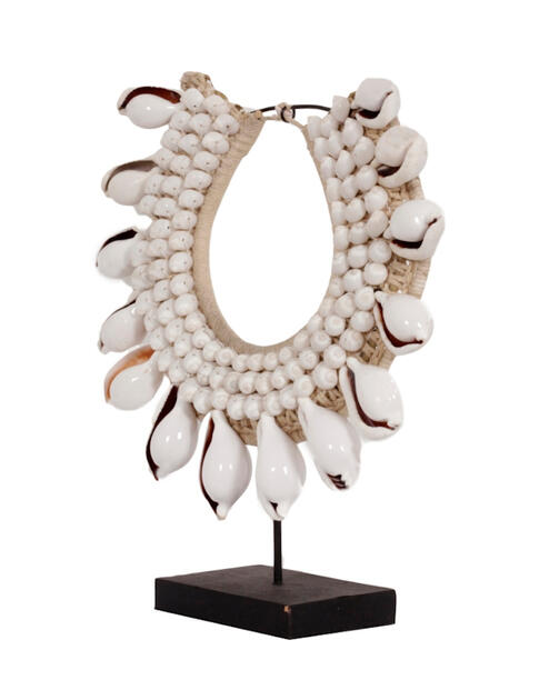 Krásný náhrdelník z mušlí na stojánku, který je součástí balení. Náhrdelník z mušlí můžete kombinovat s jinými dekoracemi na stojanu či s dekoracemi z přírodních materiálů. Jedná se o přírodní produkt, tudíž se můžou jednotlivé kusy od sebe lišit v barvě a velikosti.