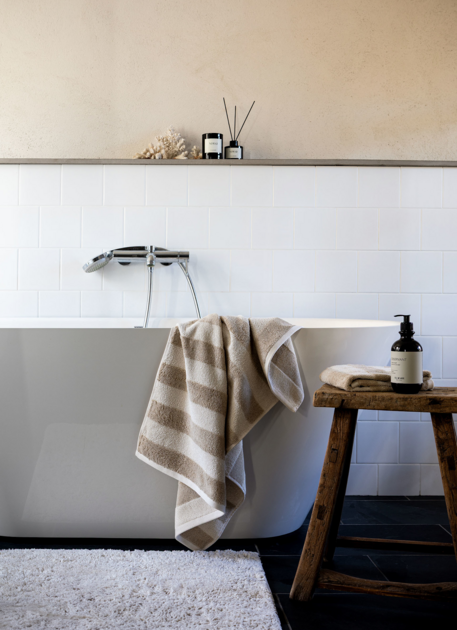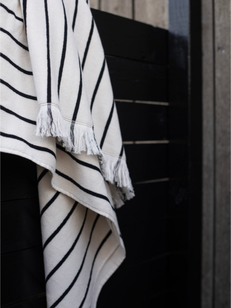 Osuška Juno je vyrobená z organické bavlny, která je tkaná klasickou froté technikou. Poskytuje osušce vysokou savost a měkkost. Stylový černobílý pruhovaný design dodá vaší koupelně nadčasový a elegantní nádech. Se svými velkorysými rozměry 100x180 cm se skvěle hodí k zabalení po sprše nebo lenošení na sluníčku.