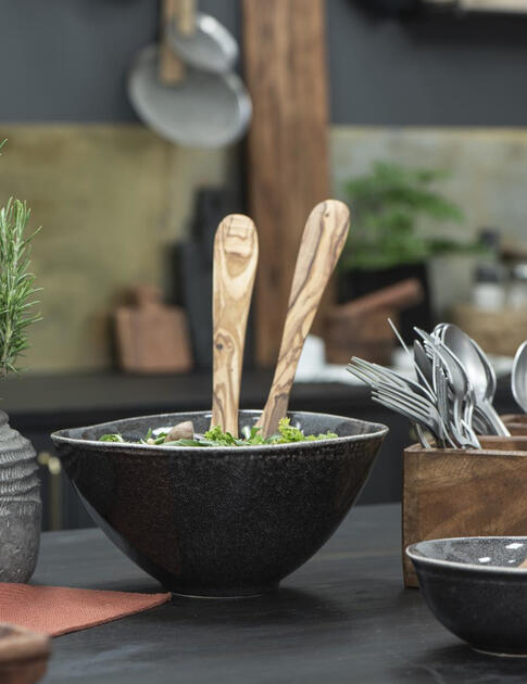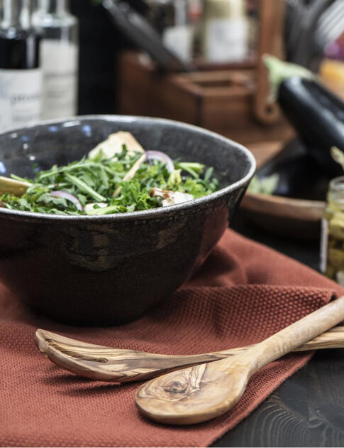 Ručně vyráběný salátový příbor z olivového dřeva. Nedoporučujeme mýt v myčce na nádobí.