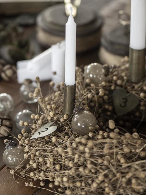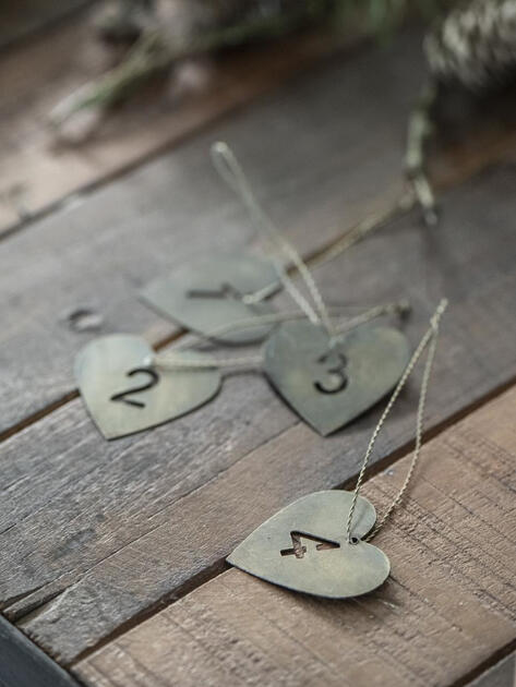 Kovová adventní srdíčka, kterými můžete ozdobit svíčky a vytvořit adventní dekoraci.