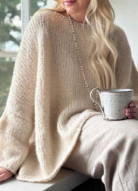 Kolekce Bypias představuje měkký, velmi volný svetr s lodičkovým výstřihem a sníženou linií ramen. Lem se mírně rozšiřuje a má oversize střih. Nádherný a pohodlný svetr pro chladnější dny.
