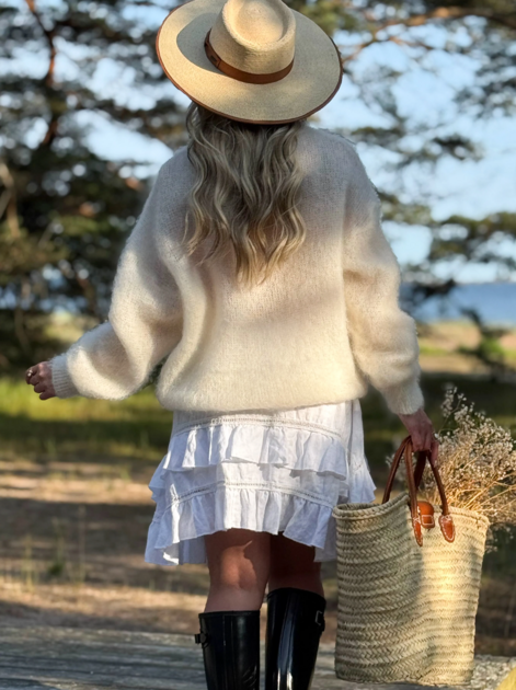 Tento luxusně měkký a teplý svetřík je perfektním doplňkem pro chladnější dny. Má kulatý výstřih a lehké žebrování na manžetách a lemu.
