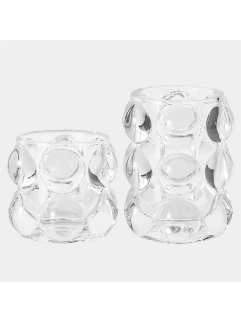 Krásný skleněný svícen pro vytvoření atmosféry. Stačí jen zapálit svíčku a pozorovat odrážející světlo, kterému dodávají na zajímavosti dekorativní bubliny.