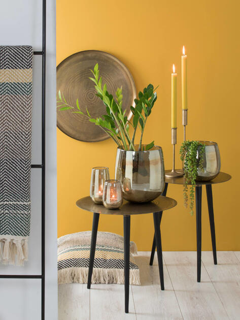 Skleněný svícen Jevargi s bublinkami ve skle, které tvoří krásné světelné efekty při hořící svíčce.