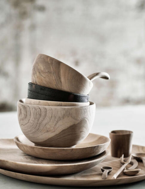 Pokud chcete moderní, teplý a útulný stůl, tak potom jsou pro Vás tyto talíře ideální. Vypadají dobře na samotném stole, ale jsou také kombinovatelné s jinými druhy talířů, skla, misek… Vždy dodají vašemu stolu skvělý neobvyklý vzhled. Ovšem teakový talíř nemusíte využít pouze ke stolování, můžete na něho umístit svíčky a použít ho jako dekoraci ve Vašem interiéru. Jednotlivé talíře se můžou lišit tvarem a barvou. Není vhodné talíře umývat v myčce na nádobí. V naší nabídce máme teakový talíř i ve větších velikostech o průměru 26 cm nebo 37 cm.